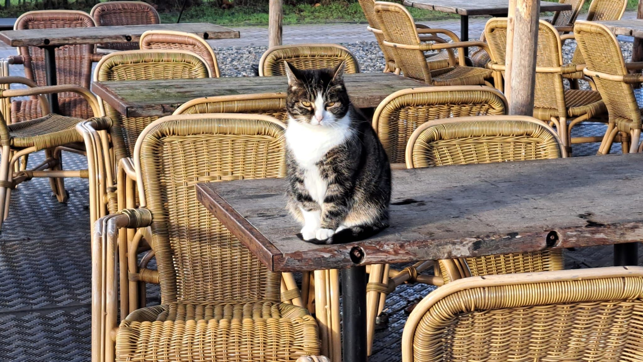 van de zelfbedieningshoreca in de grijze container naast het terras.